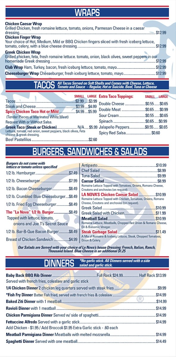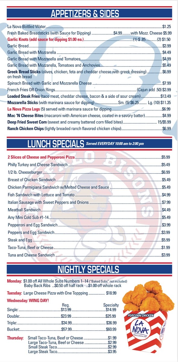 When you're in the mood for something delicious, look no further than the La Nova Menu at 371 W Ferry St in Buffalo, NY. Known for its cozy atmosphere and mouth-watering dishes, this spot offers a variety of flavorful options that cater to all tastes. Whether you're craving a perfectly baked pizza with a crispy crust, a hearty pasta, or fresh salads, there’s something here to satisfy your appetite. The menu is filled with both classic and unique dishes, each made with fresh ingredients that shine in every bite. From the rich, cheesy bites of their signature pizzas to the vibrant flavors in their pasta dishes, every meal at La Nova is a delight. If you're in the area and looking for a place where quality and flavor meet, the La Nova Menu is definitely worth checking out!